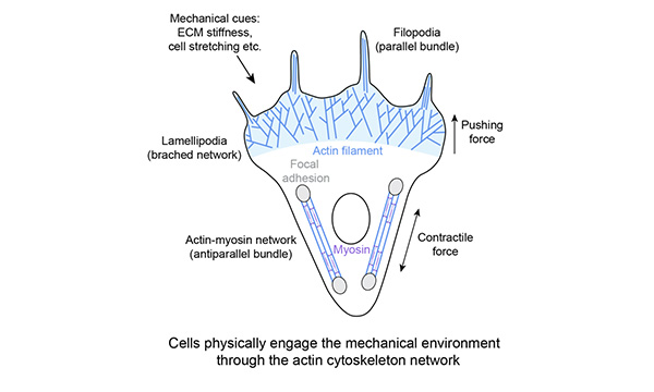 Life is physical in nature and governed by the laws of physics. In addition to biochemical cues, the mechanical properties of the cells and their environment play a fundamental role in guiding cell behavior. Cells can sense and transduce external mechanical inputs into biochemical signals, regulating key cellular processes such as cell proliferation, adhesion, migration and fate determination. The actin cytoskeleton network serves as a central hub for mechanical signaling, integrating external mechanical forces and translating them into biochemical signals through mechanotransduction to regulate gene expression. The Gong lab employs cryo-electron microscopy along with biochemical and biophysical approaches to investigate: 1) the assembly principles of the actin cytoskeleton network and its dynamic remodeling in response to mechanical forces; 2) the mechanisms by which the actin cytoskeleton mediates the conversion of mechanical signals into biochemical signals. Our long-term goal is to elucidate the fundamental mechanisms by which actin cytoskeleton links external mechanical signals to gene expression during development and to understand how their dysregulation contributes to disease.